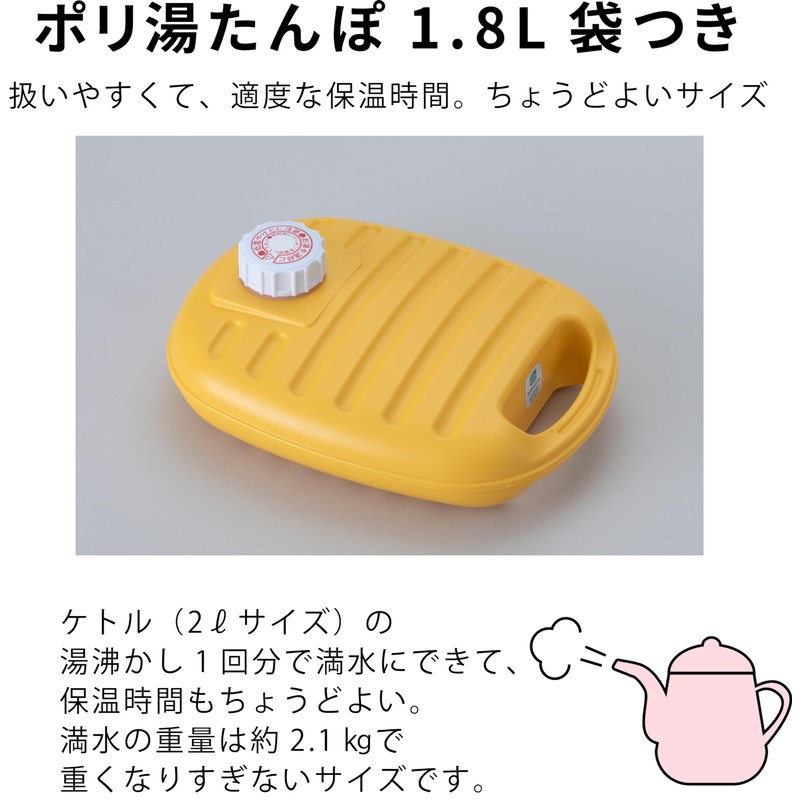 ポリ湯たんぽ イエロー 1.8L 袋付