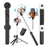 El trípode para selfies es multifuncional y ajustable. No solo puede ser el trípode de su teléfono ligero para viajar, sino también un soporte de teléfono para la grabación de video cuando está transmitiendo en vivo o puede ser un trípode de palo para selfies con control remoto cuando toma fotos familiares. Brindando los mejores resultados fotográficos para aplicaciones de escenas múltiples.