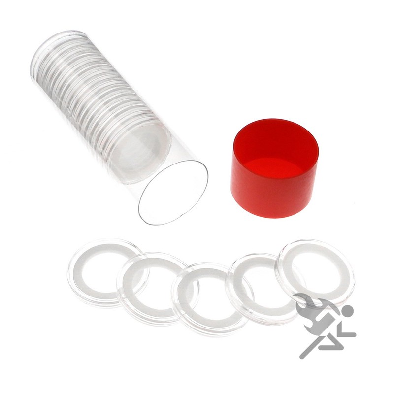 (1) Airtite Coin Holder Storage Container & (20) White Ring 23mm Air-tite Coin Holder Capsules for 1/4oz Gold Libertads
