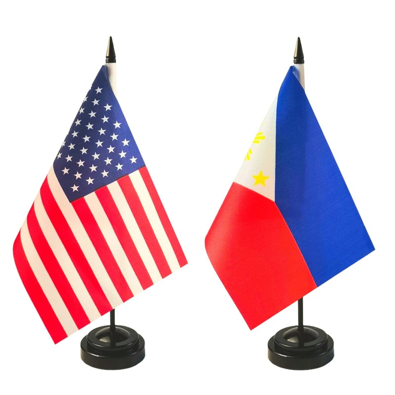 1 American and 1 Filipino 8"x5" Miniature Desk & Table Flag, Includes 2 Flag ...