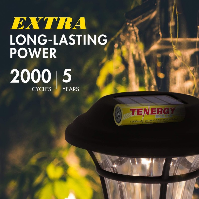 Keep your solar garden lights shining bright with Tenergy Solla AA Rechargeable NiMH Batteries. Designed specifically for solar applications, these 1000mAh rechargeable batteries provide steady, long-lasting energy for outdoor lighting, pathway lights, yard decorations, and more.