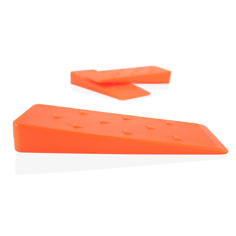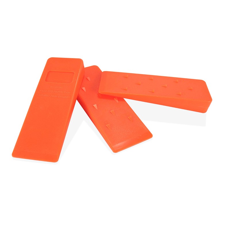 • 3 pack tree Felling wedge kit includes 3 orange 8 inch wedges with serrated barbs on one side to hold the wedge securely in place.