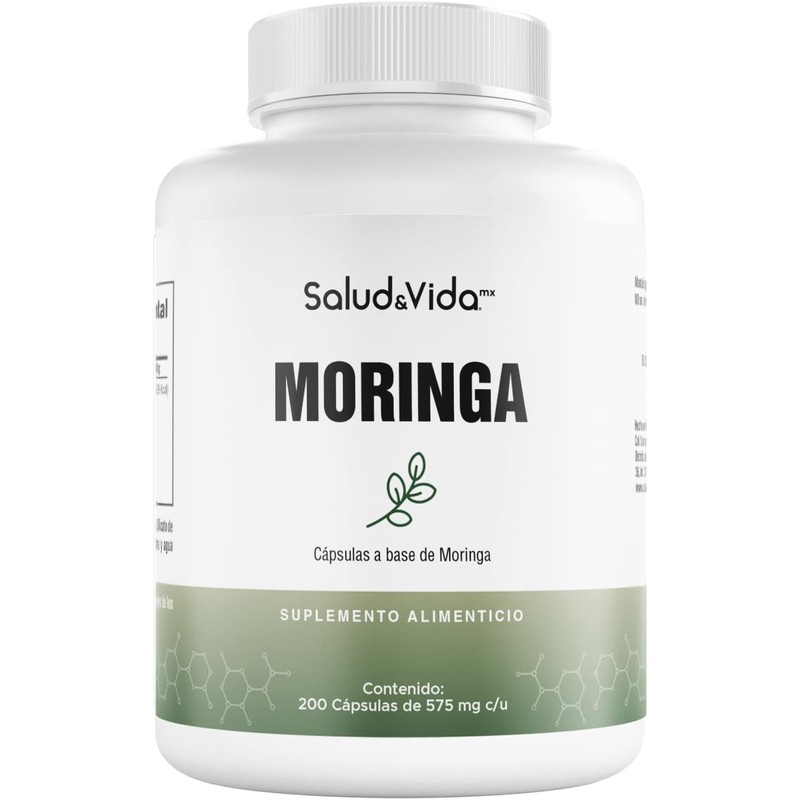 Moringa (Moringa oleifera) 1500 mg por porción (3 cápsulas) Modo de empleo: Tome 3 cápsulas por día. Cápsula a base de gelatina y agua purificada. “Libre de conservadores” “Libre de parabenos” “Libre de colorantes y saborizantes artificiales” “Sin lactosa” y “Sin gluten”. Contiene 0 mg de Magnesio Elemental. ESTE PRODUCTO NO ES UN MEDICAMENTO. EL CONSUMO DE ESTE PRODUCTO ES RESPONSABILIDAD DE QUIEN LO RECOMIENDA Y QUIEN LO USA.