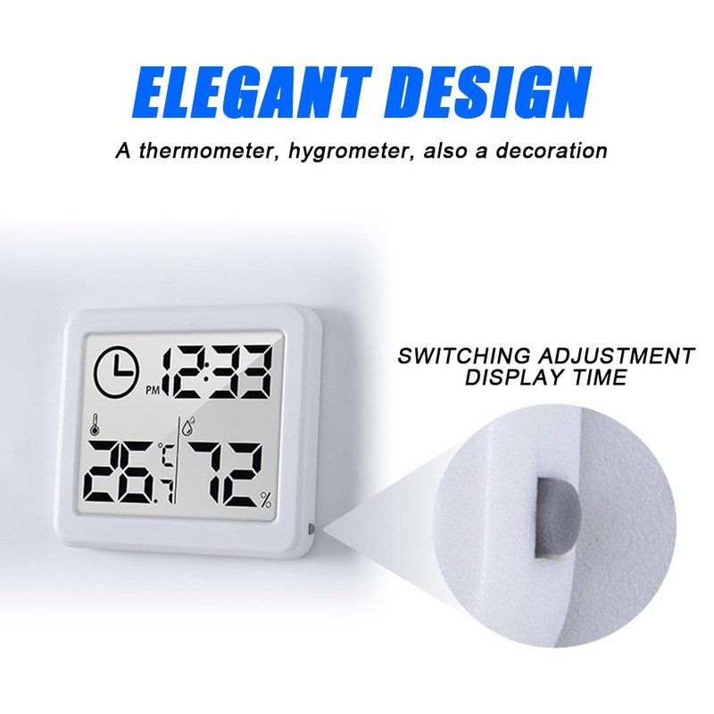 ミニ&温度計 1本セット スイッチ 粘着/嵌入使用可能 デジタル液晶スクリーン 温室ハウス/地下室/家庭/ベビールームなど/爬虫類/適用 黒 時計 デジタル 温度計 温湿度計 お風呂場用 マグネット 吸着式 スタンド式 お風呂クロック&温湿度計 ホワイト