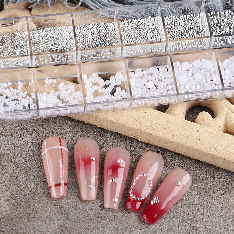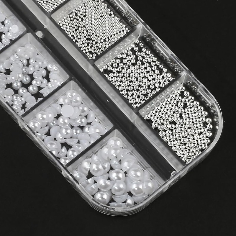 - Package contain: you will receive 1 box/12 grids of semi-circular nail beads and nail beads in different sizes. 6 grids of white nail beads are semi-circular that can show the luxury temperament. And 6 grid nail beads suitable for most natural and fake nails, you can make all kinds of bold and stylish nail designs.