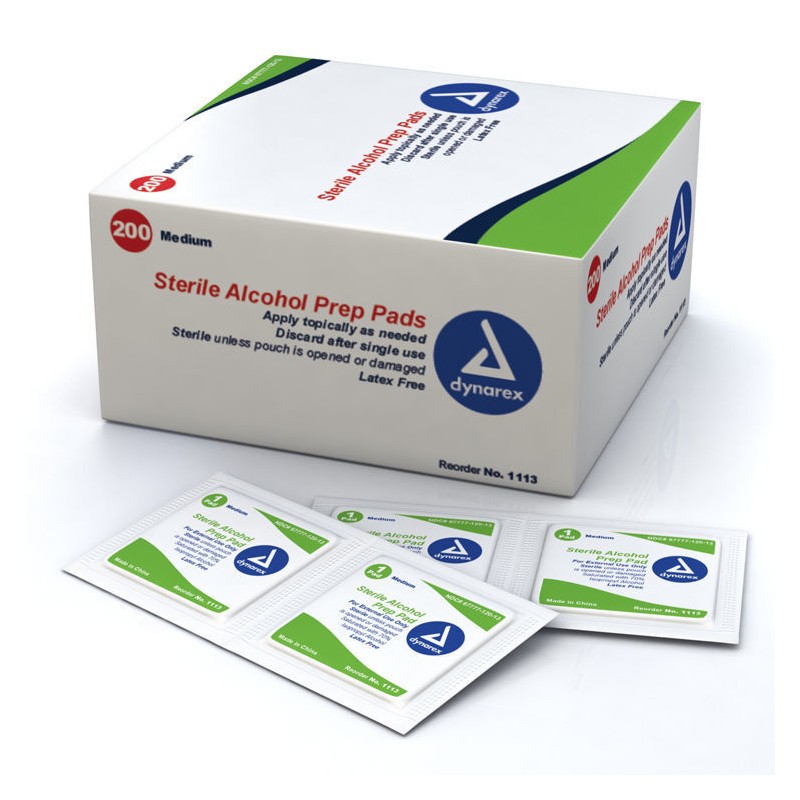 Sterile Alcohol Prep Pads Size Medium .. 1 box of 200 ... Ships Fast ... Most orders received in 2 to 3 days .... #1113 Total of 200 pads ..