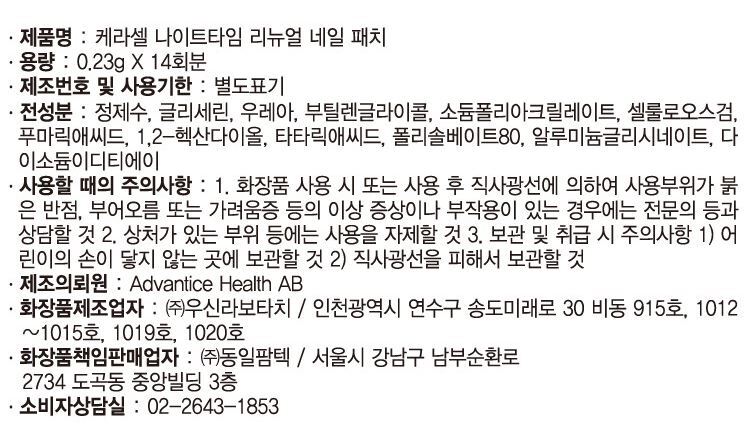 케라셀 패치 14매 나이트타임 손발톱영양제 손발톱 강화제 문제성 손발톱 케어 1박스