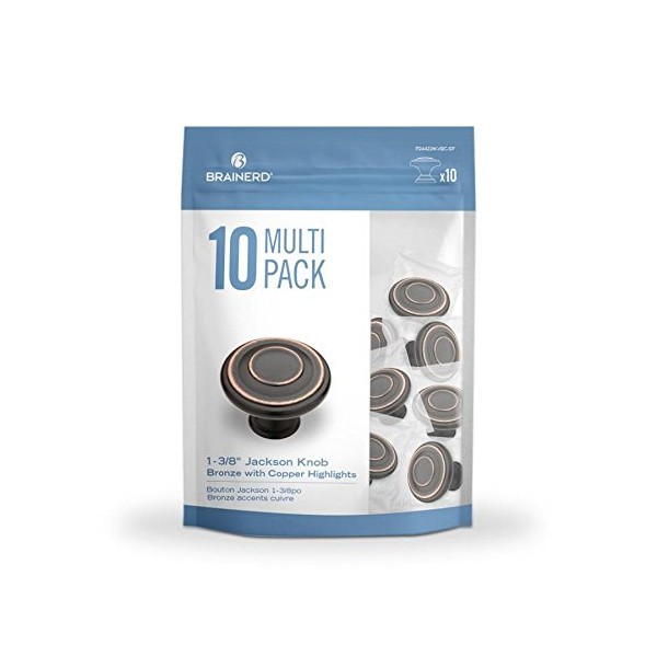 (1) Brainerd 10-pcs Bronze With Copper Highlights Round Cabinet Knob P24423W-VBC-SP