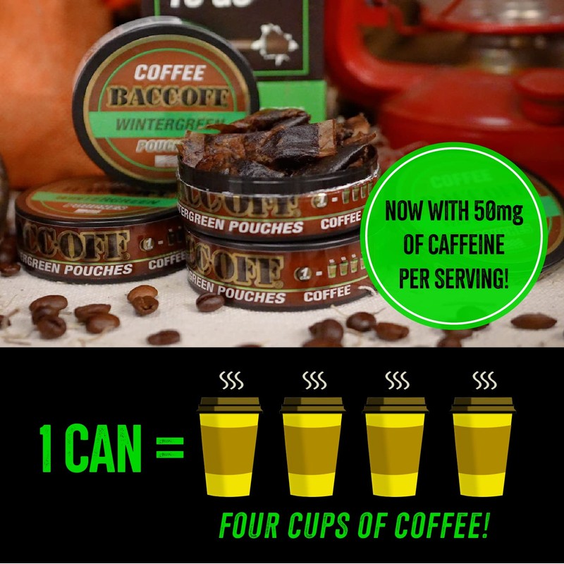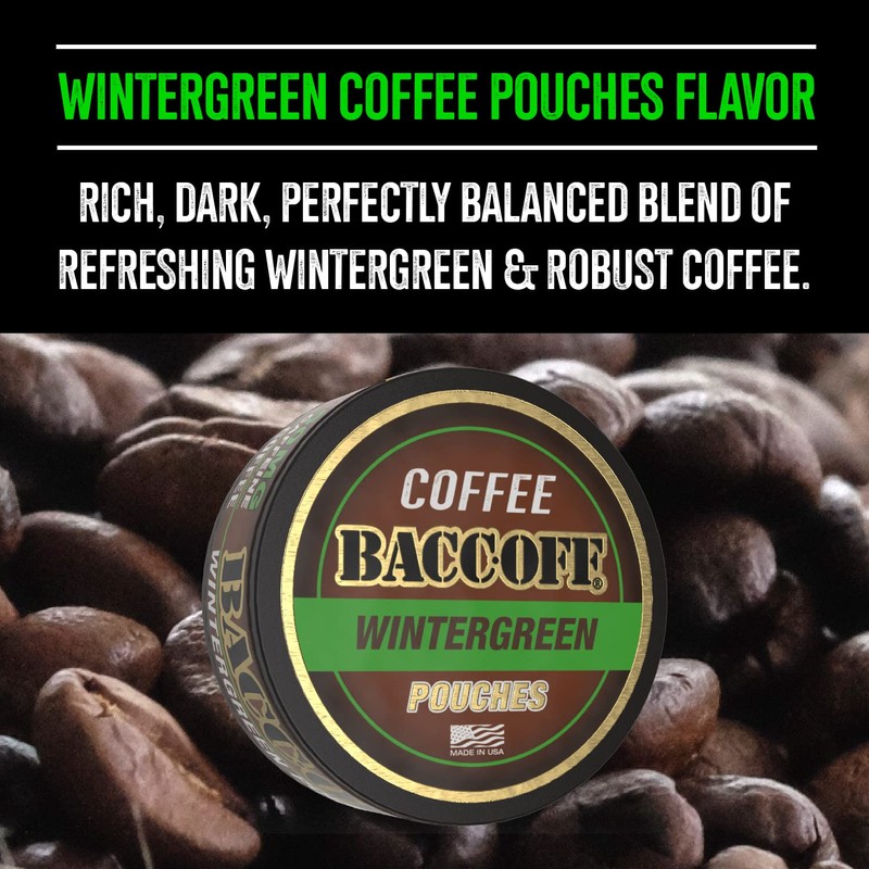 1 Can, BaccOff Wintergreen Coffee Pouches, 50 MG of Caffeine Per Serving, Wintergreen and Robust Coffee Flavors, 16 Pouches