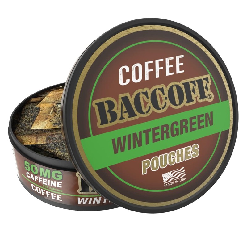 1 Can, BaccOff Wintergreen Coffee Pouches, 50 MG of Caffeine Per Serving, Wintergreen and Robust Coffee Flavors, 16 Pouches