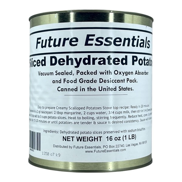Future Essentials Dehydrated Scalloped Potatoes, Uncooked – #10 Can, 16 oz – 25-Year Shelf Life – Sliced, Shelf-Stable, Long-Term Emergency Food Storage – Survival & Prepping Supply – Grown and Packaged in the USA