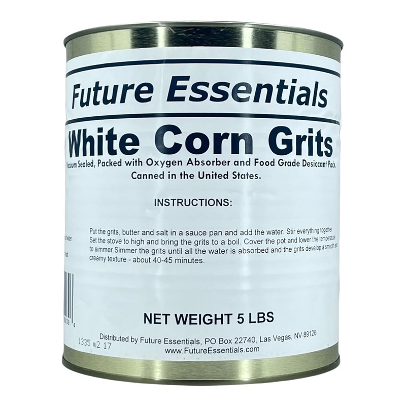 White Corn Grits | 5 lbs of White Corn Grits for Disaster Preparedness | Long Term Survival Emergency Food Supply | 30 Year Shelf Life | Size #10 Can | Made in the USA | Net Weight 5 Pounds per can