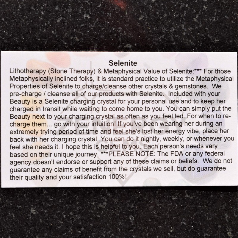 ***PLEASE NOTE: No federal agencies endorse or support any of these claims or beliefs. We do not guarantee any claims of benefit from the crystals we sell, but do guarantee their quality and your satisfaction 100%! You'll love them and they will love you back for as long as you own them. We can only guarantee the size and quality of products 'sold by' us. Please Check?