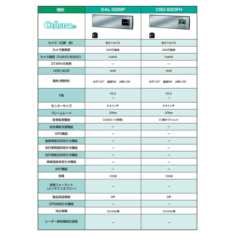 セルスター ドライブレコーダー ミラー型 1カメラ CSD-620FH 200万画素 FullHD HDR SONY Exmor CMOSセンサー 2.4インチ microSD(16GB)付 駐車監視機能 日本製 3年保証 CELLSTAR