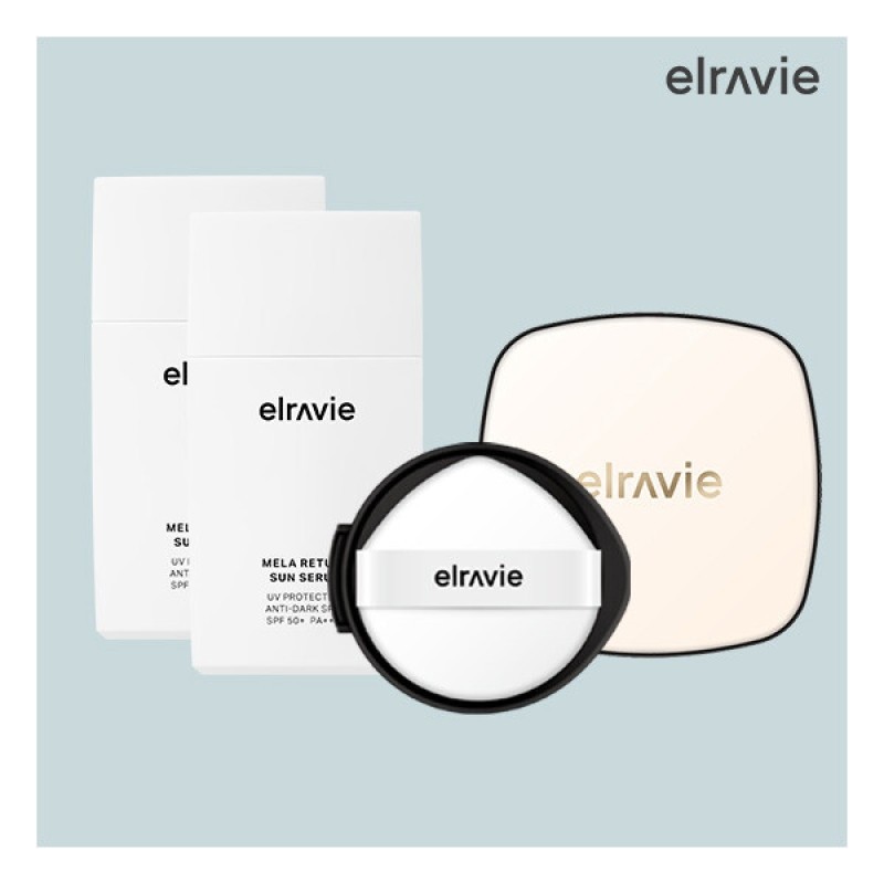 1 Elravie Gimi Cushion (White) + 1 Refill + 2 Melariturn Sun Serums / 엘라비에 기미...