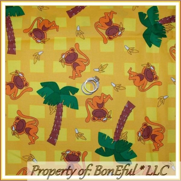 1 Fat Quarter or Continuous Cut WHEN POSSIBLE BonEful FABRIC FQ Cotton Yellow Brown Plaid MONKEY Palm Tree Green Safari Banana