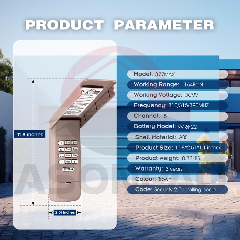 1 for 877MAX 877LM Universal LiftMaster Garage Door Opener Keypad 3-Year-Warranty