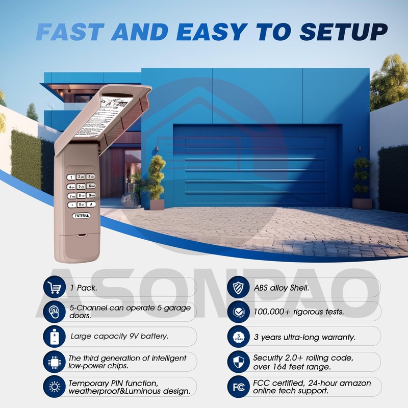 - **Top-Notch Security**: Safeguard your garage with security 2.0+ rolling code encryption and a low-power chip, ensuring energy-efficient, robust protection against unauthorized access.