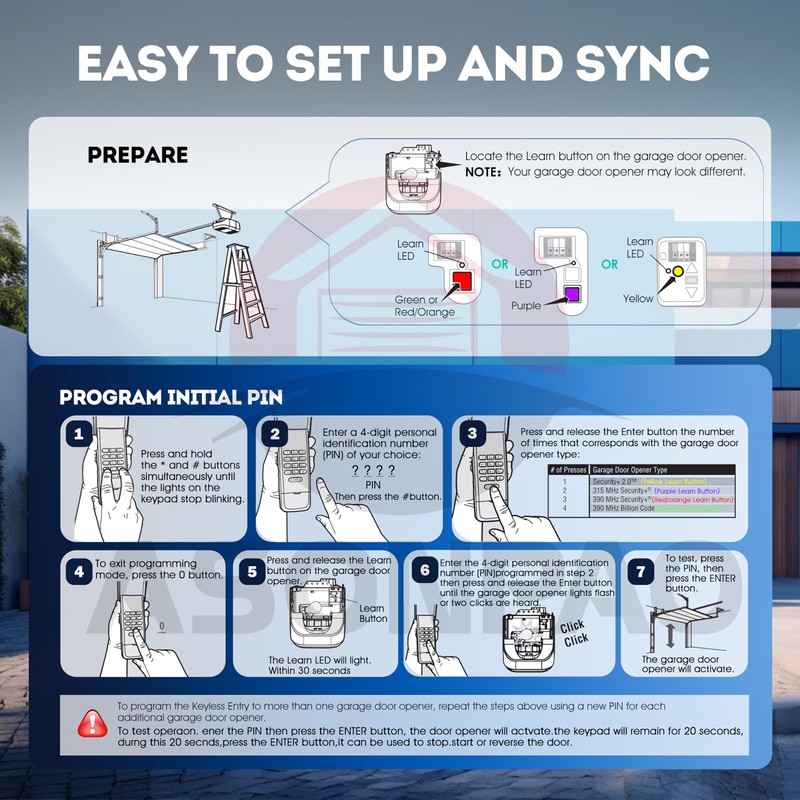- **Effortless Keypad Entry**: No more fumbling with remotes! Enter your personalized PIN on the wireless keypad for quick and convenient garage access.