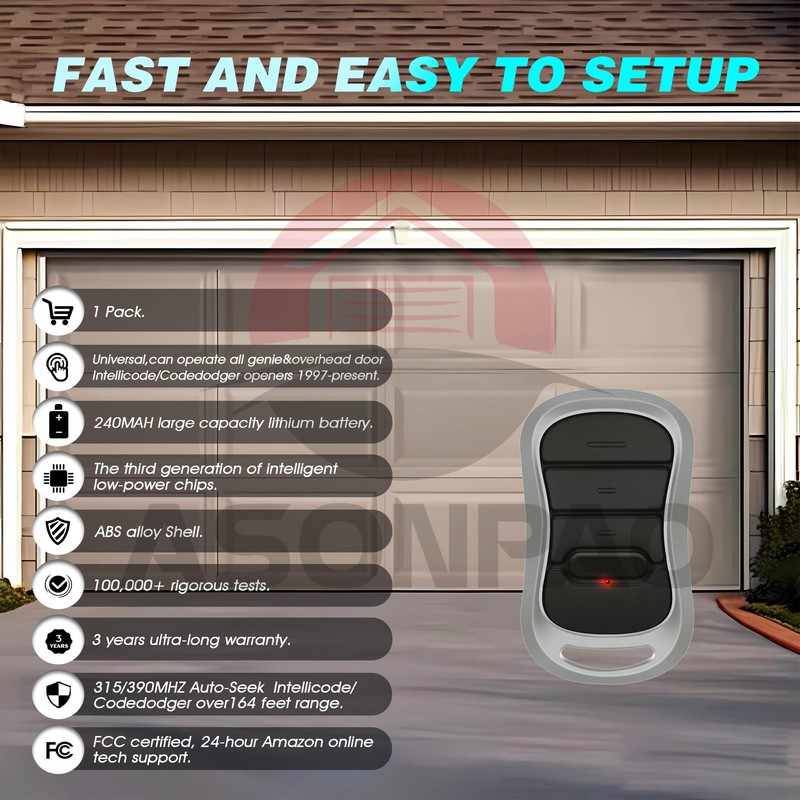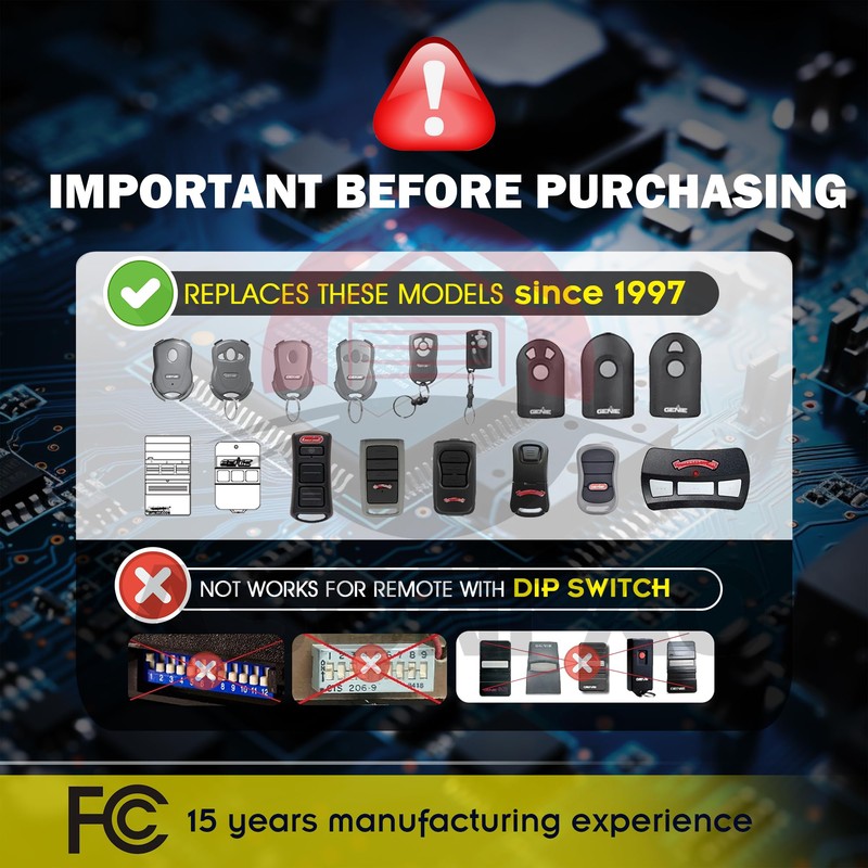 - **Universal Replacement**: Universal Replacement for all Intellicode Remote of Genie&Overhead Door Garage Door Opener from 1997-manufacture date to current.Attention:NOT works for remote with dip switch!