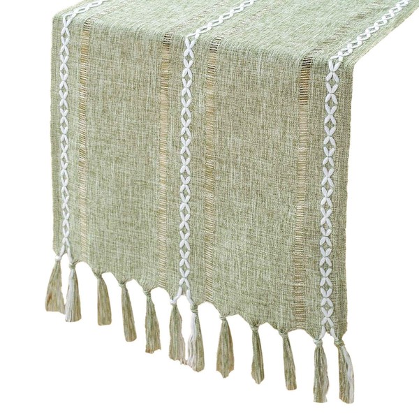 1 Green Table Runner, Linen Table Runner, Hollow Tassel Table Runner, Woven Table Runner, Decorative Table Runner, Simple Style Table Runner