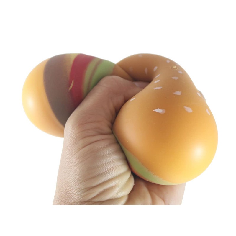 1 Hamburger Stretchy Squishy Squeeze Stress Ball Soft Doh Filling - Like Shaving Cream - Sensory, Fidget Toy Burger (1 Burger Ball)