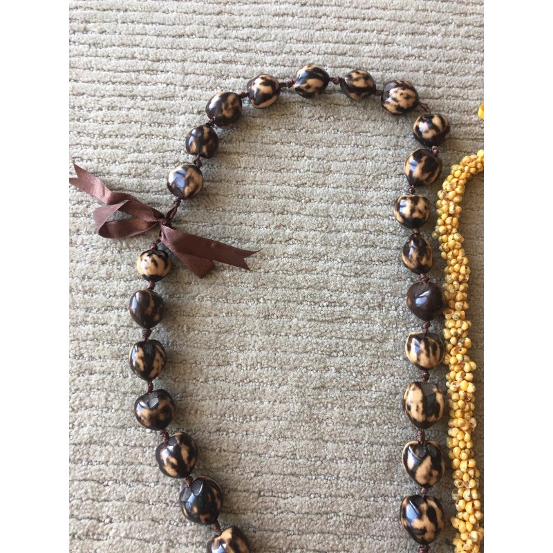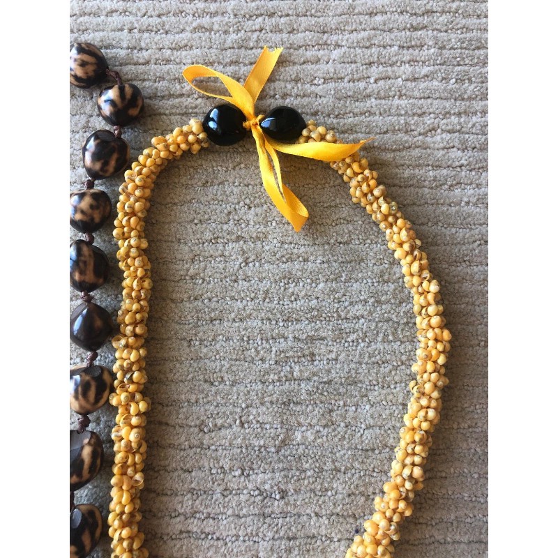 1 HAWAIIAN KUKUI NUT LEI (white & brown) & 1 HAWAIIAN SHELL LEI (yellow shells)