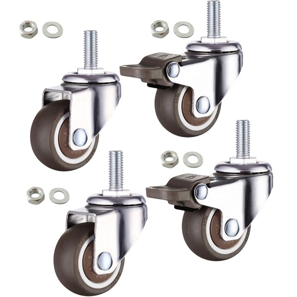 1 Inch Stem Casters, Mini Universal Wheels M6x15mm Thread, Low-Profile Casters 96 Pounds Load Capacity, 4 Pieces, with 2 Brakes