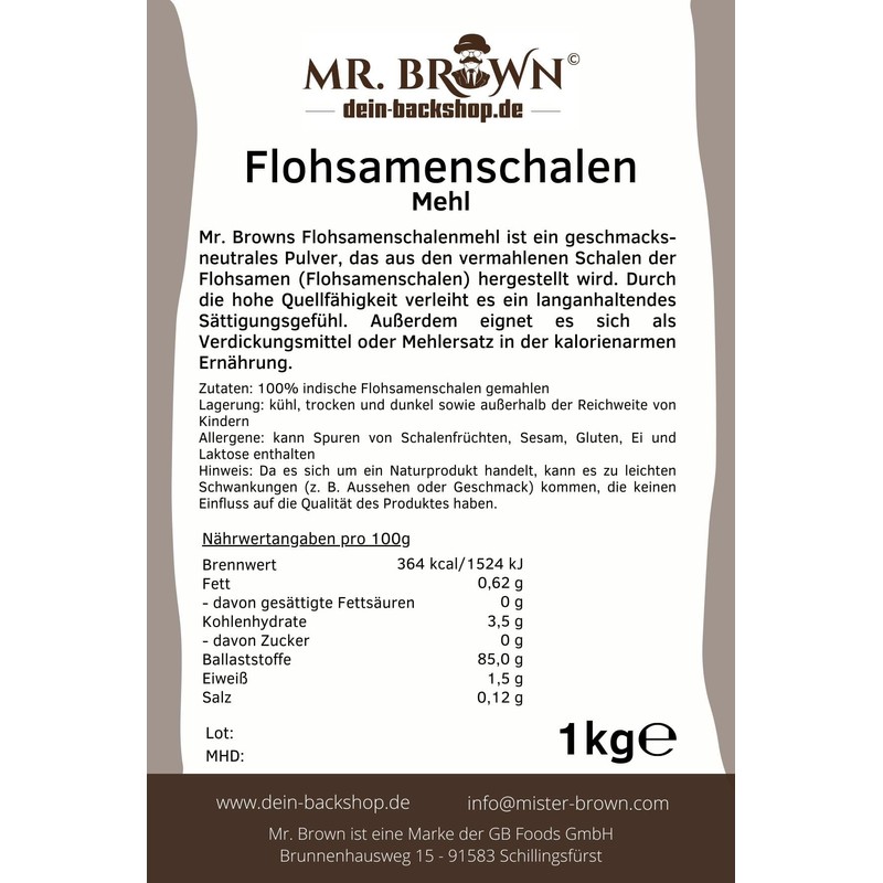Mr. Brown Psyllium husks come from India and are harvested, sifted and dried by hand. The powder tastes neutral and is very well tolerated. Thanks to their high swelling ability, they give a long-lasting feeling of satiety. Allergens: may contain traces of nuts, sesame, egg, gluten and lactose
