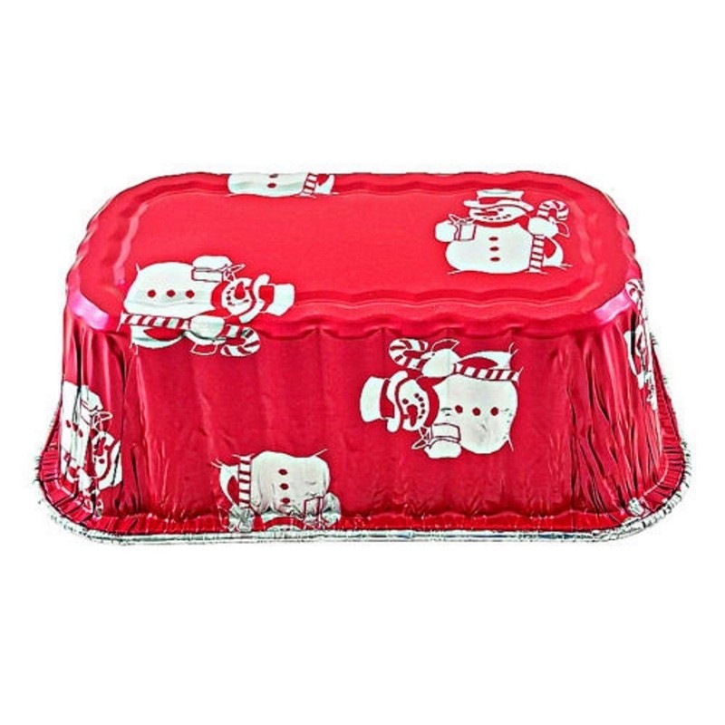 1 lb. Red Holiday Christmas Snowman Aluminum Foil Small Mini Loaf / Bread Baking Pans with Clear Dome Lids (Pack of 12 Sets)