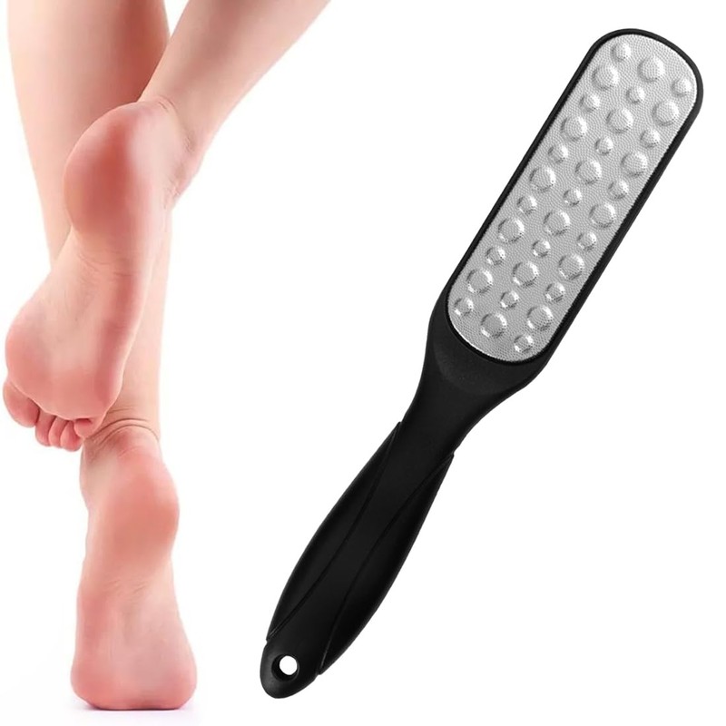 - Premium Quality The foot file is laser cut and made of high quality stainless steel, sturdy and durable. There is no risk of injury or cutting, it is skin-friendly and not very aggressive