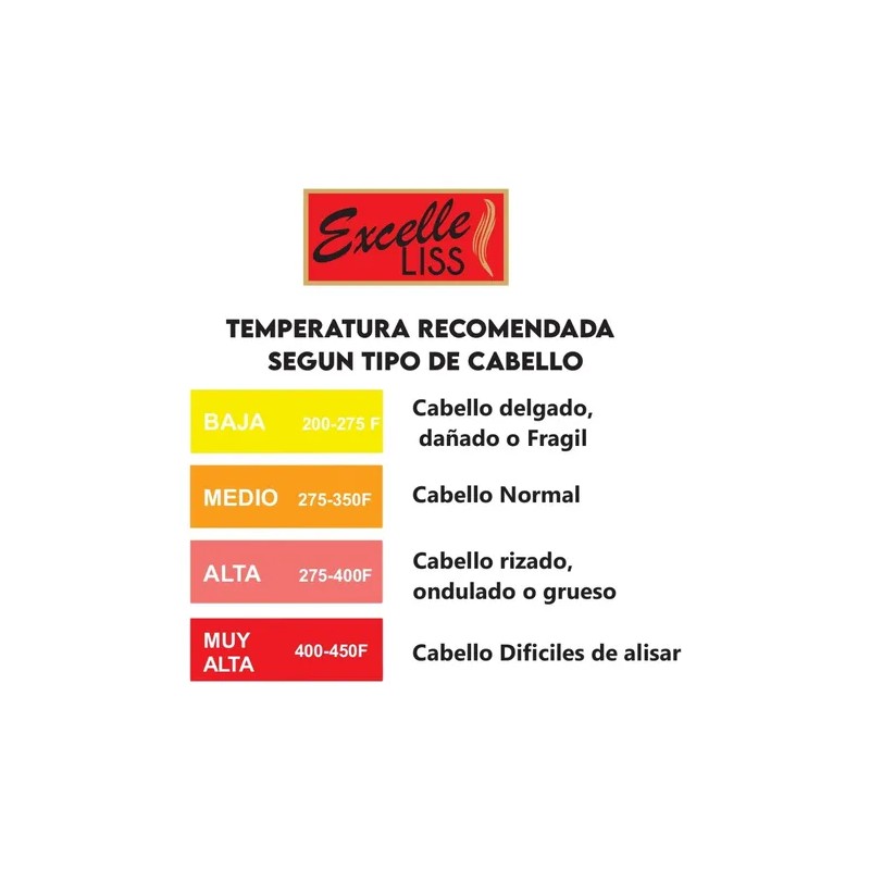 EN EL CABELLO MUY PROCESADO DEBERA USARSE UNA TEMPERATURA MENOR (350° farenheit) a criterio del profesional.