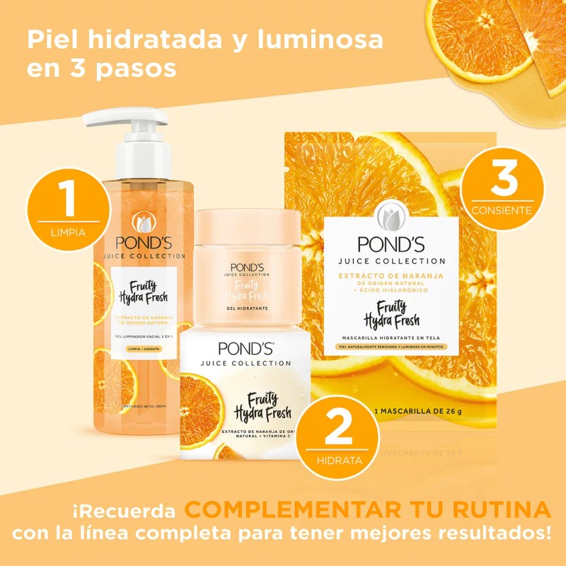 Pamper your skin with POND’S Fruity Hydra Fresh Hydrating Mask, infused with natural orange extract to deliver deep hydration and a refreshing glow.