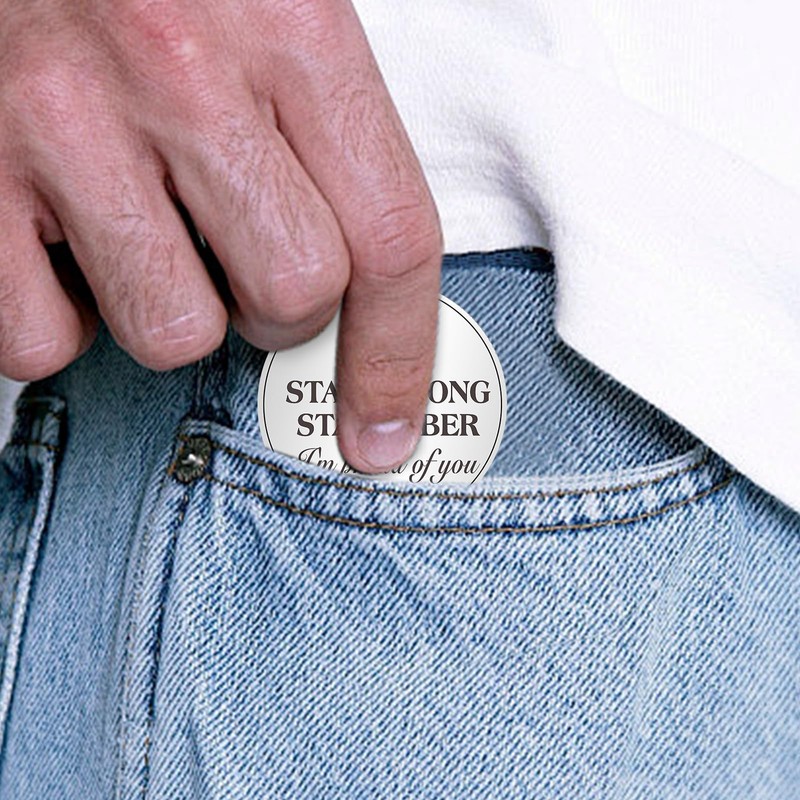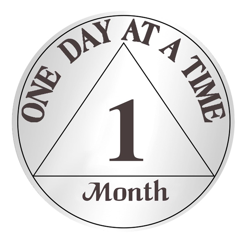 - Elegant Design Front Design: The coin features a sleek "One Day at a Time" engraving within a triangular frame, representing the principles of Alcoholics Anonymous (AA). The "1 Month" engraving marks a key milestone in your sobriety journey. Back Design: The reverse displays "Stay Strong, Stay Sober" with the message, "I'm proud of you," providing daily motivation to continue your recovery.