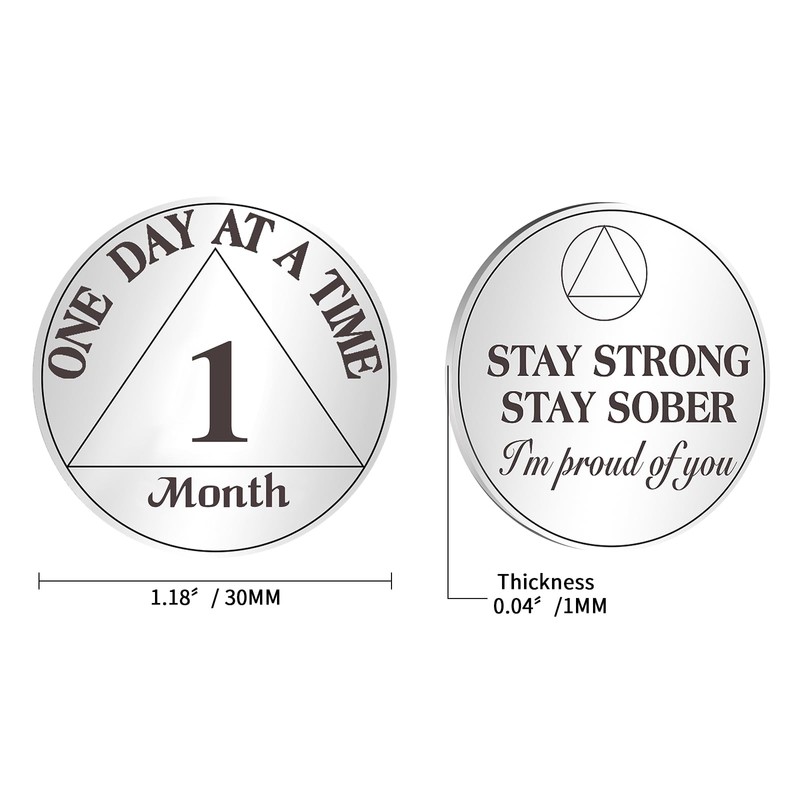 - Celebrate Milestones Marking the 1 month sobriety milestone, this coin is more than just a token—it's a powerful symbol of your dedication and progress in the recovery journey. The coin, paired with the PU leather keychain, serves as a constant reminder of your achievements and motivates you to continue with determination.