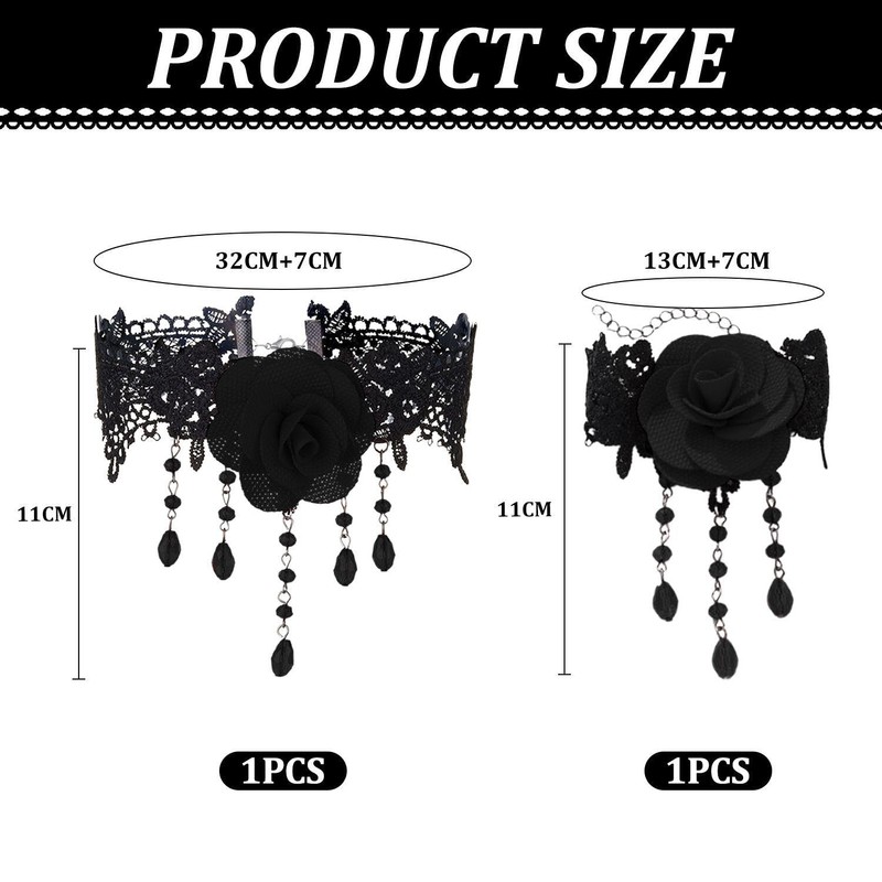 - 【Product Content】You Will Receive 1 Piece Of Collar And 1 Piece Of Bracelet. The Size Of The Collar Is 32+7Cm, And The Size Of The Bracelet Is 13+7Cm. The Color Is Black, Which Is Suitable For Matching Gothic Style Clothing.