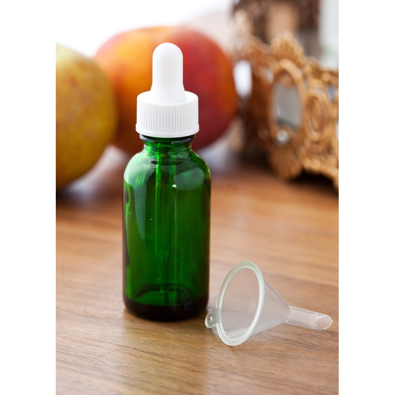 1 oz / 30 ml Green Glass Boston Round Empty Bottle with White Dropper (12 pack) + Funnel