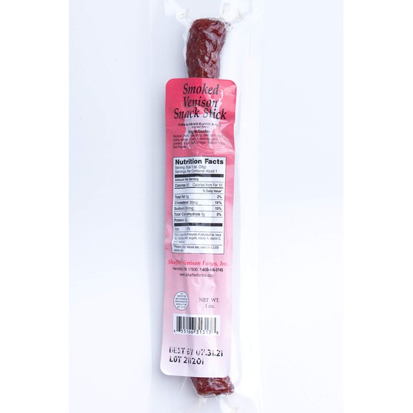 - Smoked Venison, Snack, Individually packaged- 30 1 ounce sticks/box