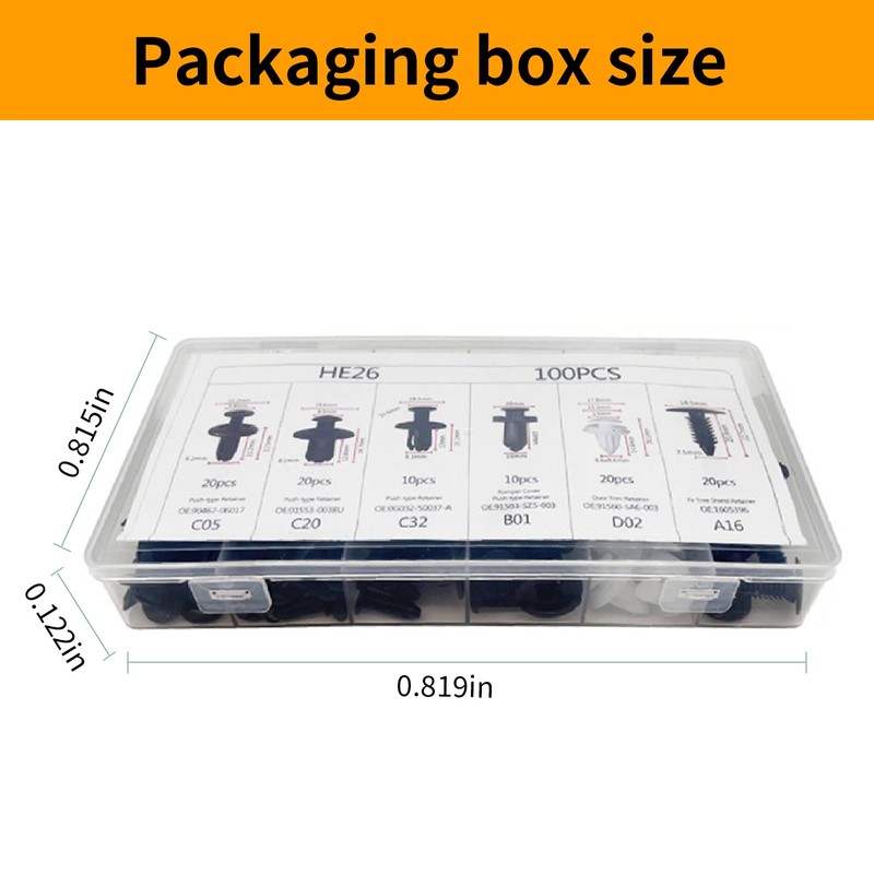 - These car retainer clips are designed to work with a variety of car models, the product size diagram is printed on the surface of the box for easy use