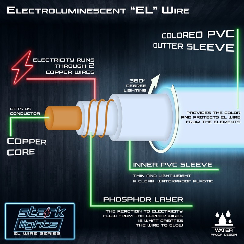 - BRIGHEST ON THE MARKET: Delivers a more stable and intense color than other EL Wires. Offer 360 degrees of illumination. Life time: more than 12,000 hours