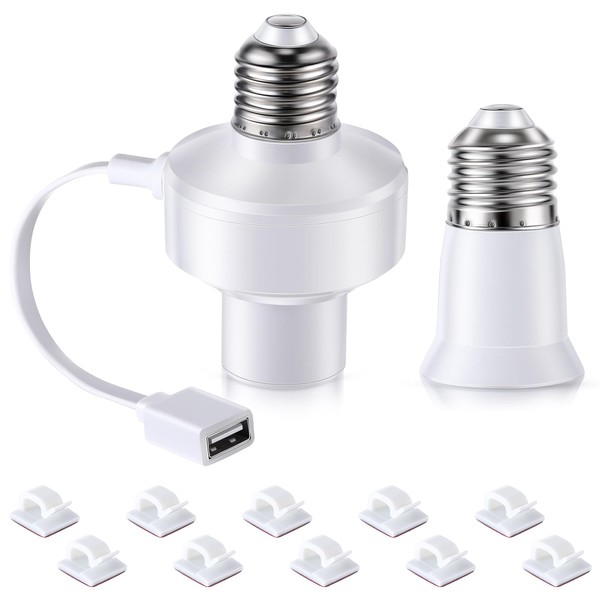 1 Pack E26 Light USB Socket Adapter, Lamp Socket Power Adapter 5V 1.5A, Light Socket Adapter Compatible with Wyze Cameras v3,v4,v3 Pro, USB Light Socket for Smart Camera, Smart Bulb, GPS, LED Strip