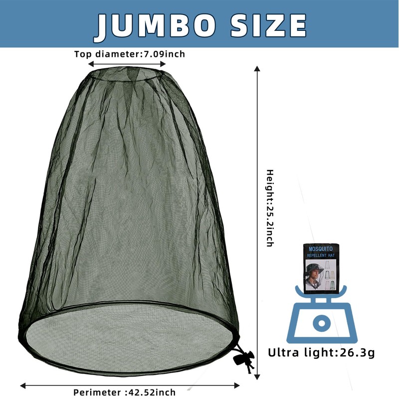 Jumbo Mosquito Head Net Giant Insect Netting Shield Face Large Size Bug Net for Head Comfortable & Adjustable for Hiking, Fishing, Traveling Ideal for All Outdoor Enthusiasts