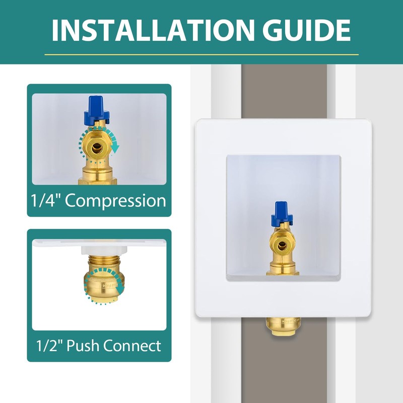 1-Pack Niikappu Push-to-Connect Ice Maker Outlet Box, 1/2"Push-fit Inlet x 1/4"OD Compression Outlet, with Installed 1/4-Turn Ball Valve(IM035)