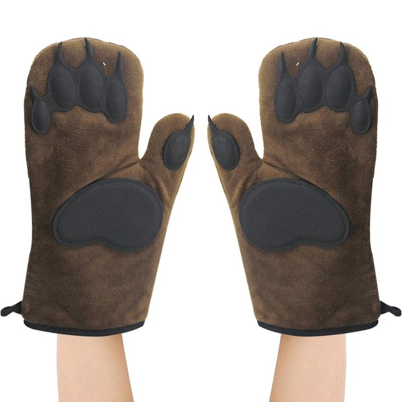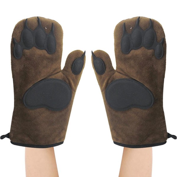 1、FUN AND PRACTICAL: These quirky oven mitts are a perfect addition to any kitchen and sure to make you smile! 2、 INSULATED MATERIALS: These oven mitts are made from insulated cotton and the "paw" pads are constructed from heat resistant silicone, letting you handle hot food easily, even when it's bear-y hot. 3、 ONE SIZE FITS MOST: These regular size oven mitts fit a wide range of hand sizes that provide a comfy and practical fit. There are two mitts each package, one right and one left "bear paw" mitt are included 4、 PERFECT GIFT: A unique and funny gift for family, friends, home chefs, bakers. everyone! Make a great housewarming and hostess gift. 5、 MULTIPURPOSE: Perfect for cooking, baking, and grilling.
