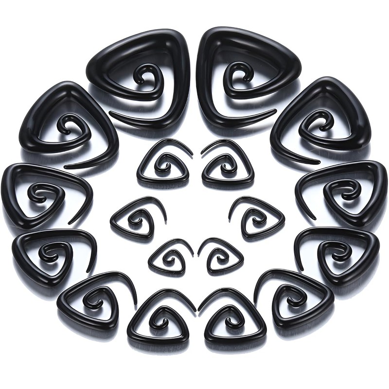 1 Pair Black Triangle 1.6 mm (14 G) Acrylic Expander Spiral Plugs Tunnel Taper Expander Acrylic Taper Set Earrings Stretcher Piercing Spiral Ear Expander Women Men, Acrylic, No gemstone