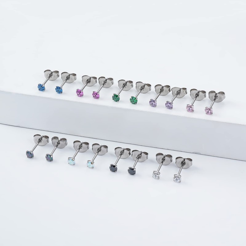 - HIGH QUALITY MATERIAL-Titanium CZ earrings are made from solid titanium 100 %, even the butterfly back is titanium. One of the best materials you can buy. Titanium will never tarnish and are completely hypoallergenic. These titanium earring studs is very fit for sensitive ears. Please rest assured to buy.