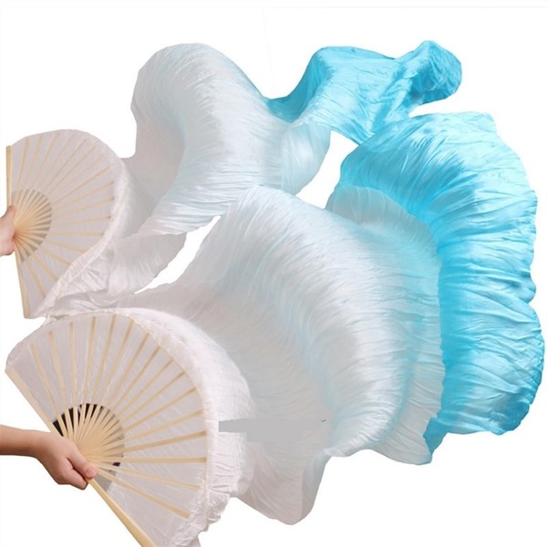 1 Pair(Left+Right) Belly Dance Fan Artificial Silk Fans,Colorful Dancing Fabric Fans,Long Folding Imitated Silk Fans,for Dancing Show Arts,Length 180cm Width 90cm. (White Gradient Blue)