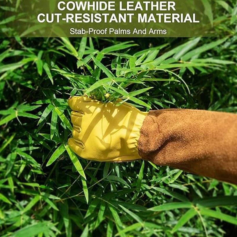 • 【Comfortable to Work】The long sleeve leather gloves are made from a soft, stretchy, and breathable material that keeps your hands comfortable and dry. Whether you're pruning, gardening, or doing yard work, these gloves provide all-day comfort, allowing you to work efficiently without hand fatigue.