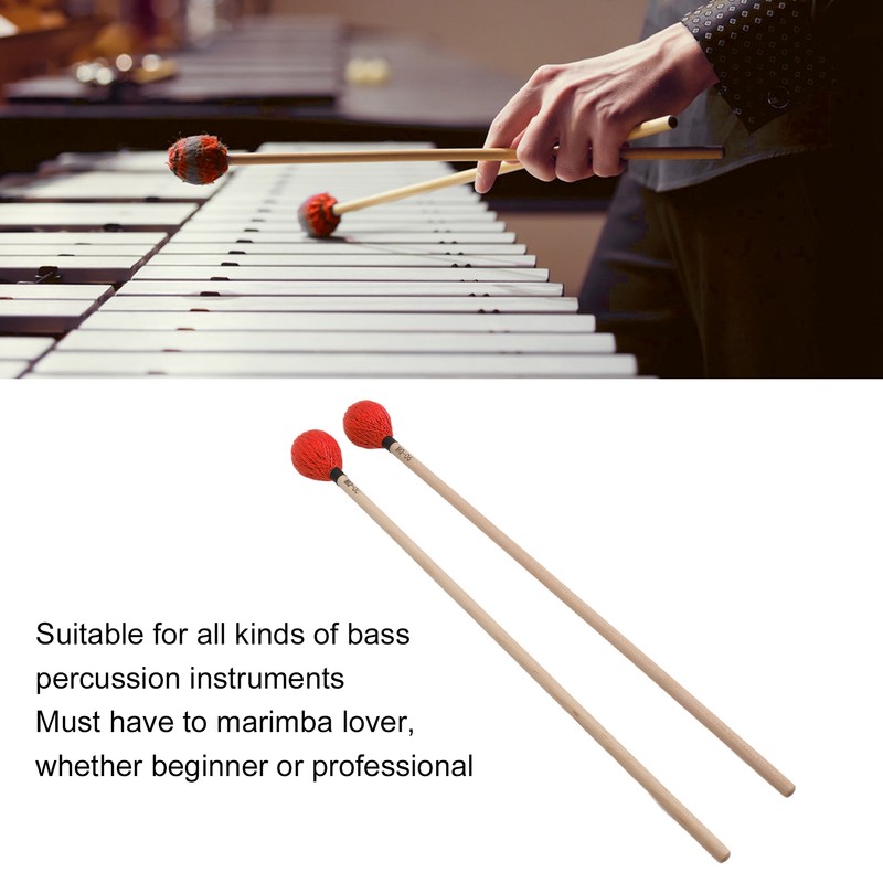 1、GOOD TOUGHNESS: Come with smooth surface, feel comfortable, possess strong toughness, durable for a long service life 2、WITHOUT DAMAGE: This marimba mallets have medium hard round head, bring soft playing, which will not damage your marimba instrument 3、COMPATIBLE WITH PERCUSSION INSTRUMENTS: The mallet hard strike is suitable for all kinds of bass percussion instruments, which is a must have to marimba lover, whether he is a beginner or a professional 4、COMFORTABLE MAPLE HANDLE: Handle is made of good quality maple material, possess better hand feeling, not easy to feel fatigue when playing 5、WEAR RESISTANT HAMMER HEAD: Made with exquisite workmanship, the hammer head's yarn is excellent wool, super wear resistant, can be used for a long time