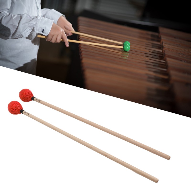 1 Pair Marimba Mallets Medium Hard Yarn Head with Maple Handle for Percussion Playing MQ‑06Red